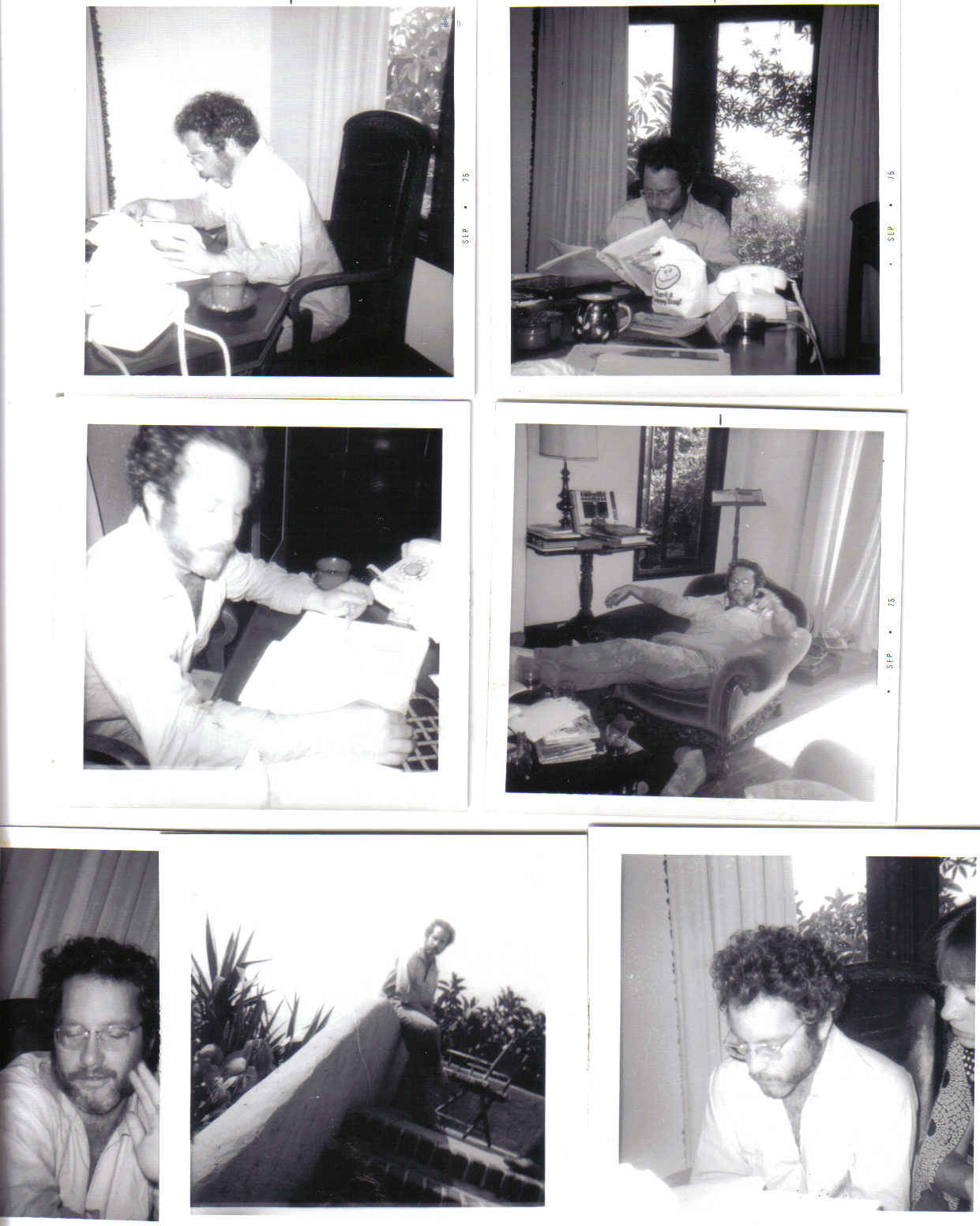 Instead of a few lines this week, I thought I'd share some photos from the past. Yes, the photo at left is what I looked like at 17. That poster cost me $15.00 and I'm happy to say I still have it. The next group of photos are some snapshots I found of Richard Dreyfuss relaxing in September 1975. They were sent to me by Richard's cousin, Arlene, who can be seen in one of the photos. If I remember correctly, Arlene told me that Richard is studying Spielberg's first draft of "Close Encounters of the Third Kind."
