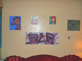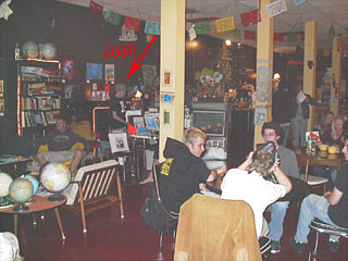 After that, Will Moriaty and I became semi-regular patrons of The Globe Coffee Lounge (532 1st Ave N, St. Petersburg), where Josh still works to this day. The Globe is THE place to hang out for artist-types in that area and frequently hosts exhibitions and musical acts. This article is about the second of two shows there that I'm aware of that catered strictly to 25-year-old Josh Sullivan and his art, this one on Thursday, November 16th, 2006. (The first show, late in 2004, I was unable to attend.)