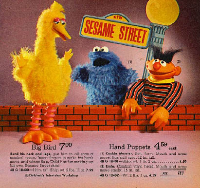 OK, maybe it’s just me but this is one of the sickest advertisements I think I have ever seen for a children’s toy line. They could have just as easily called this line the Pedophile Pals and saved some licensing fees from the Children’s Television Workshop! Just read some of the descriptions above if you don’t believe me. It’s pretty obvious here that Big Bird is a half tanked letch who just stumbled on to an old perv’s goldmine! Cookie Monster is eager to make a quick buck but Ernie is clearly having second thoughts about the proposition. Ernie’s hair looks like it anticipated one of the site gags in “There’s Something About Mary” by a good twenty years! The only thing that could have made this line any more fun would have been a Vice Cop Bert figure so you could run Big Bird down to the station before this gets any worse!