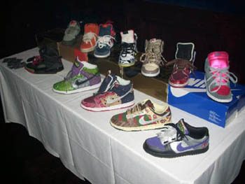 >Arriving to a rain soaked Ybor City around four-ish, I made my way through the hoards of leatherclad men in short-shorts and sleeveless bull dykes who have taken over the areas sidewalks to my destination in the Centro area. When I made my way through the doors at Club Skye I was immediately greeted by a display case full of sneaker collectable's that included the dopest pair of Nike Huaraches I have ever had the privilege of eye screwing. The dance floor in the center of the room had accumulated a gathering of break dancers and a crowd of onlookers. The outskirts of the main floor were covered by dealer tables pushing everything from custom painted sneakers to rare Nike Dunks, my favorite being the Nightmare On Elm Street editions.