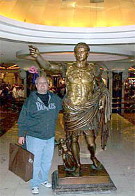 The Forum Shops at Caesars have a lot to offer including a magic store, an art gallery for the work of Peter Max, and an FAO Schwarz (I thought they were all out of business). Outside the high end toy store was a person dressed in a huge costume of what I later found out was an Ugly Doll (the information I miss not having kids!) and I couldn’t resist grabbing a typical tourist photo. In the commons area of the mall are beautiful fountains, statues, and an aquarium decorated with what looks like the ruins of a sunken city. Byron finally found the Playboy store and bought a windbreaker style jacket with the familiar company logo. We headed out through the casino and never could locate a woman in a toga for Byron to get his picture taken with! At this point, Brandon departed for a late evening of low stakes gambling but Byron and I decided to call it a night.