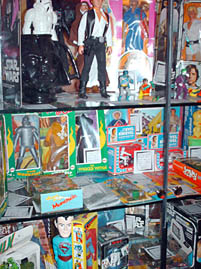 It was nearing dusk now and the casinos were turning on their impressive light displays. We used one of the overhead walkways to cross the street to Caesars Palace while a synchronized fountain show was going on to one side. Once inside the cavernous casino, we marveled at the architecture and décor. Byron wanted to visit the Playboy store in the mall so we headed in that general direction making stops along the way at all manner of distractions. I discovered a store called Extreme Collectibles that is Fanboy Heaven as long as you don’t actually want to purchase anything. They had impressive displays of props from the Superman films and television series, movie props, and even a soldier ape tunic from Beneath the Planet of the Apes. Everything was tastefully framed and ready for display but the prices were outside the normal human pocket book. Even the more common vintage collectibles they carried like Mego and Star Wars figures were priced at three to four times what they can be routinely picked up for online. I wandered through the store taking photos of the incredible merchandise but as I exited I noticed a sign specifically prohibiting this! My only guess is that they don’t want any permanent record of the prices!
