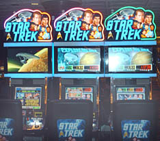 We had planned for a four day trip, including travel days, so I knew I had a lot of things to do and a limited amount of time to do them. Luckily Danny and I got non-stop flights both ways leaving out of Orlando so that cut down on the flight time and helped stretch out the visit. Byron and Brandon were coming from Jacksonville so the majority of our first day was spent flying, checking into hotels, and finally all meeting up. I stayed at the Las Vegas Hilton again and was immediately struck by the obvious absence of the Star Trek Experience that had closed, after a ten year run, this past September. The entrance to where the area once was is now blocked off by a temporary wall with a sign in front apologizing for it being discontinued. According to one employee, even though the Experience was very popular, the deal the Hilton made to host it was not as lucrative as it should have been and, from a monetary perspective, they were glad to see it close. There is a possibility though that in the not to distant future it will return somewhere else on the strip. One reminder of the past is the new Star Trek slot machines. These one armed bandits based on the original series, complete with sound bites and video, are some of the most enjoyable slots I have ever played.