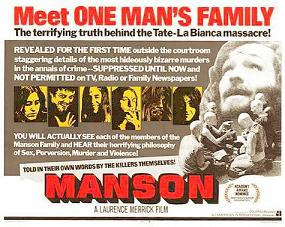 Immediately following the apprehension of the principal suspects in the Tate-LaBianca murders, documentary filmmaker Robert Hendrickson took a camera crew to Spahn Ranch to interview the other members of The Family. Over thirty-five years later this still stands as some of the most revealing footage of this rag tag bunch of outcasts and their nihilistic views on society at that time. Some of the interviews border on humorous as members discuss their drug use with complete ignorance of the potency of what they were ingesting. It is also shocking to see the antisocial and sometimes violent mindset many were in. Hendrickson represents the incarcerated members through news footage and dedicates time to supporting characters like prosecutor Vincent Bugliosi and prostitute Ronnie Howard, Susan Atkins’ cell mate who tipped off the police to her confessions and was receiving death threats at the time of filming. While the documentary can be disjointed at times and clearly appears rushed, it still presents an informative look at the members of the group behind the murders and many of the participants were later arrested for other crimes. Manson received an Oscar nomination in 1973 for Best Documentary Feature.